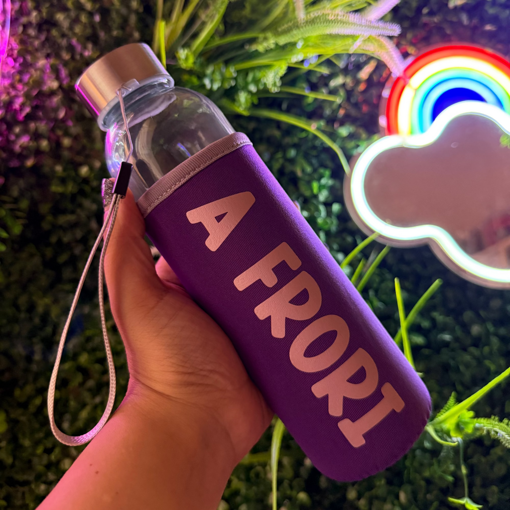 amo questa è una borraccia pezzo unico in vetro con protezione in stoffa, molto carica da portare in palestra, ufficio, per lanciarla addosso a qualcuno.