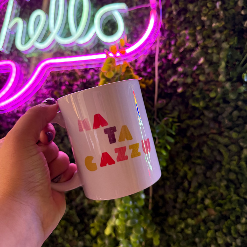 amo questa tazza ha la grafica fronte/retro, essendo fatta a mano i colori di ogni singola lettera per entrambi i lati sará differente.